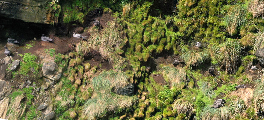 After the match, Thomas, Robin and Dave gear up to drone the final colonies of the Northwest coast while Jeff and Hannah head back to Crater Bay to do the same with the penguin colonies missed out on the other day. It is another gorgeous day with breath taking vistas. After droning the inaccessible penguin colonies, Thomas attempts to record a vertical panorama to survey a sooty albatross colony that appears to be glued to a vertical cliff covered in wet moss.